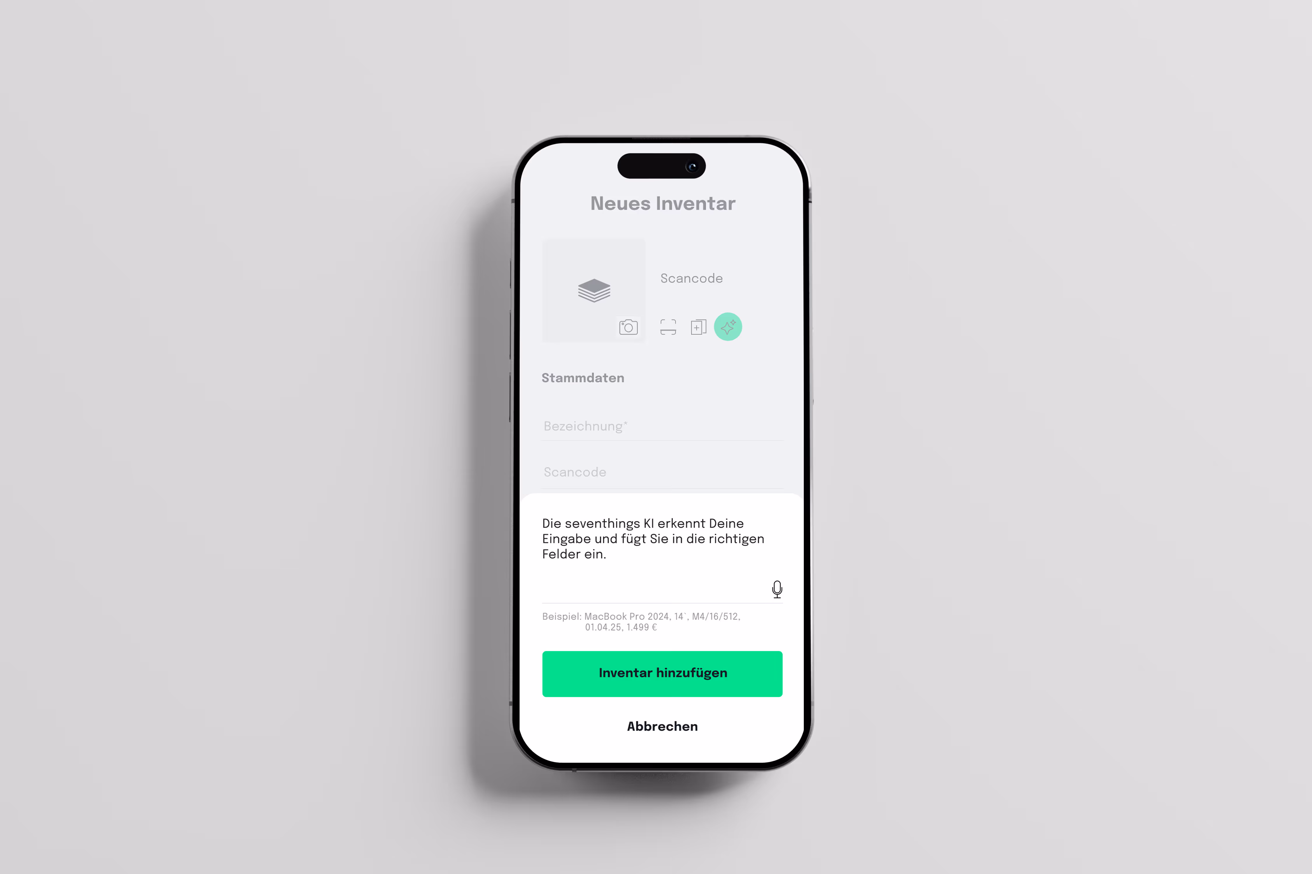 Dokumentieren Sie per Stimme: Unsere KI-gestützte Spracheingabe erkennt und kategorisiert Asset-Infos automatisch. Erfassen Sie Bestände händefrei und messbar schneller als per Tastatur.
